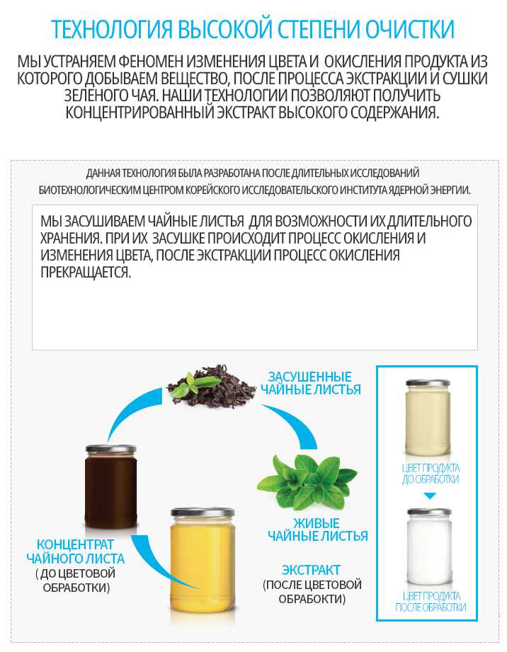 • Экстакт листьев зелёного чая.